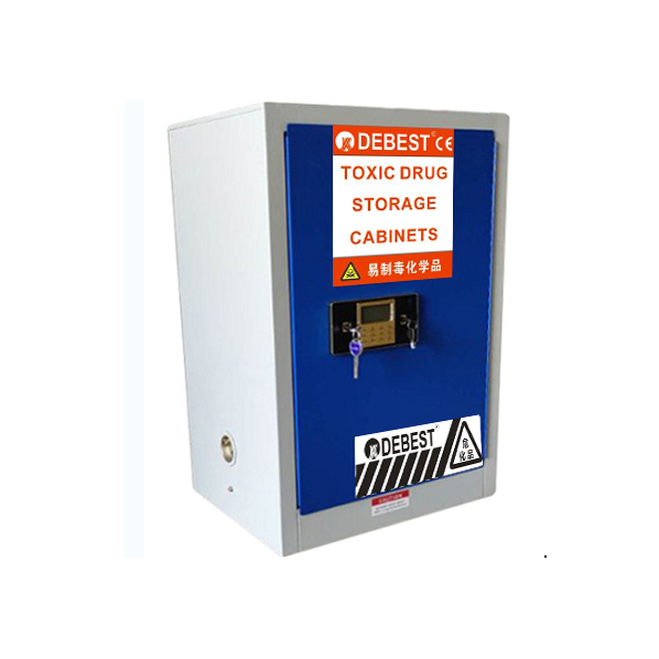 1:DEBEST剧毒药品储存柜整体为双层1.2mm防火钢板构造,两层钢板之间间隔40mm,内填特种防火材料,防火性能更为卓越。柜体采用全焊接,非铆结构使其拥有更长的使用时间,因为减少了空气间隙可在着火时提供更好的防护。