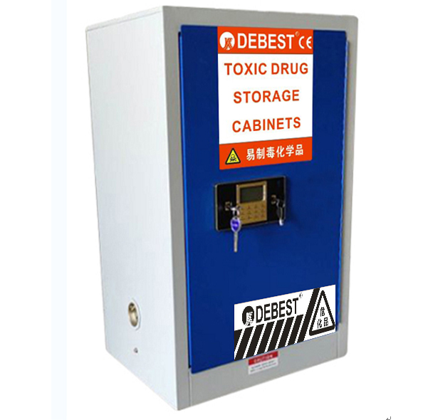 1:DEBEST剧毒药品储存柜整体为双层1.2mm防火钢板构造,两层钢板之间间隔40mm,内填特种防火材料,防火性能更为卓越。柜体采用全焊接,非铆结构使其拥有更长的使用时间,因为减少了空气间隙可在着火时提供更好的防护。