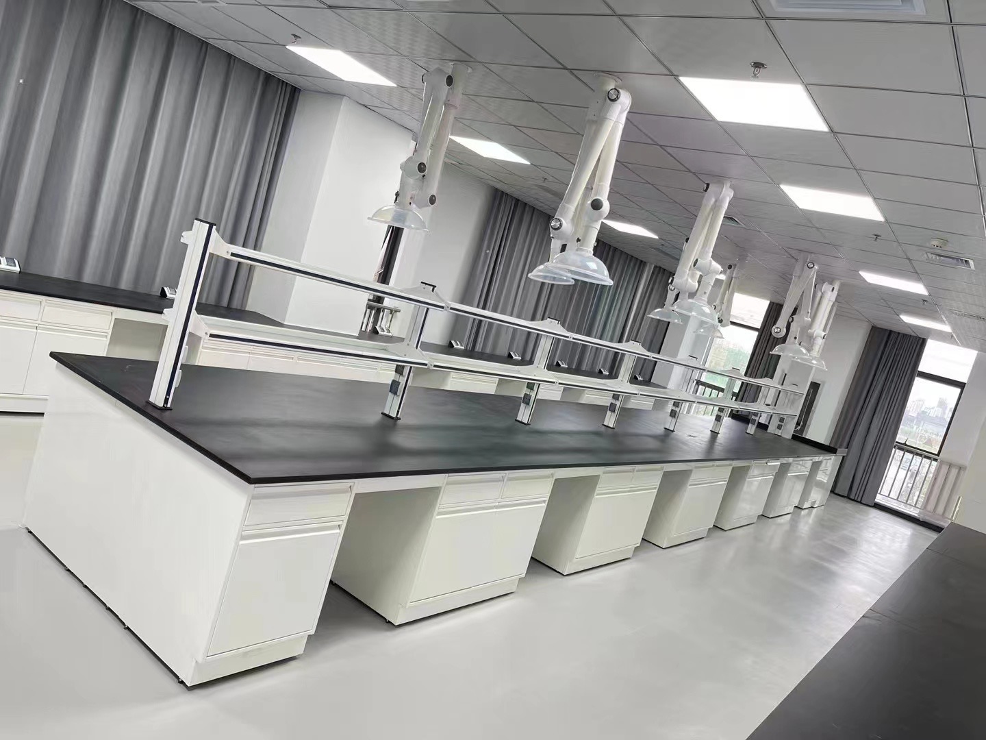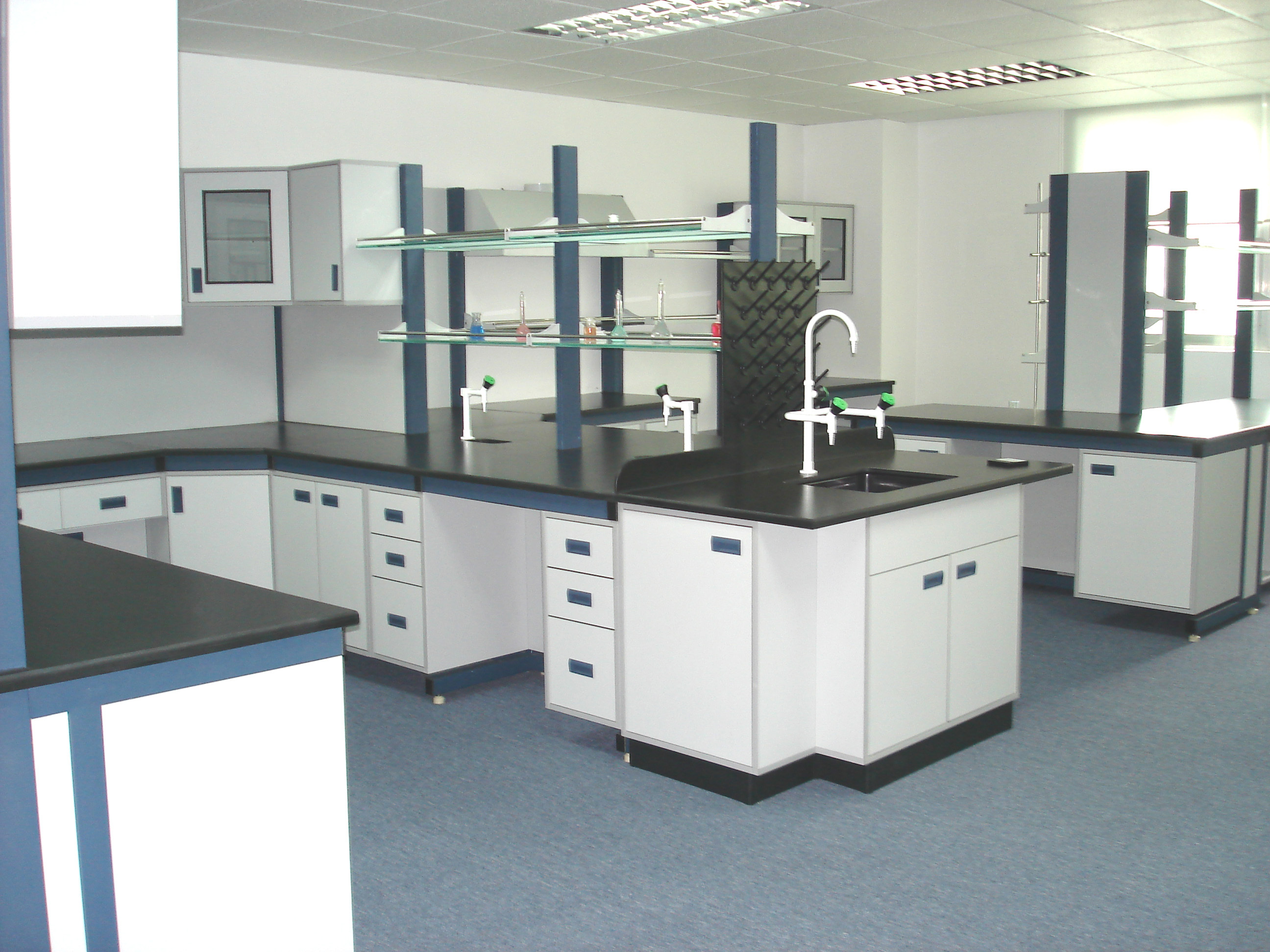 实验台面选择——陶瓷板、环氧树脂板、荷兰进口千思板、美国威盛亚实芯理化板等,台面的正常选用厚度(边缘可加厚)25mm、20mm、16mm、12.7mm,耐酸碱、耐一定的温度;