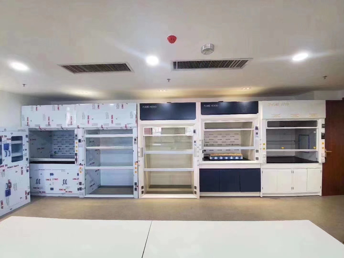 尺寸:1200/1500/1800*850*2350(L*W*H ) MM 特点:步入式通风柜,可选择全钢不锈钢PP材质,升降式开门或者左右式开门。